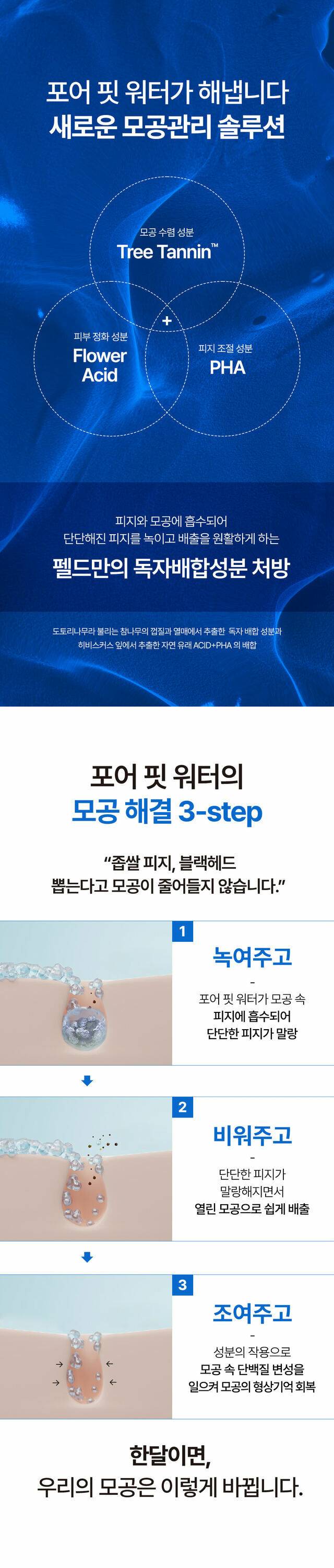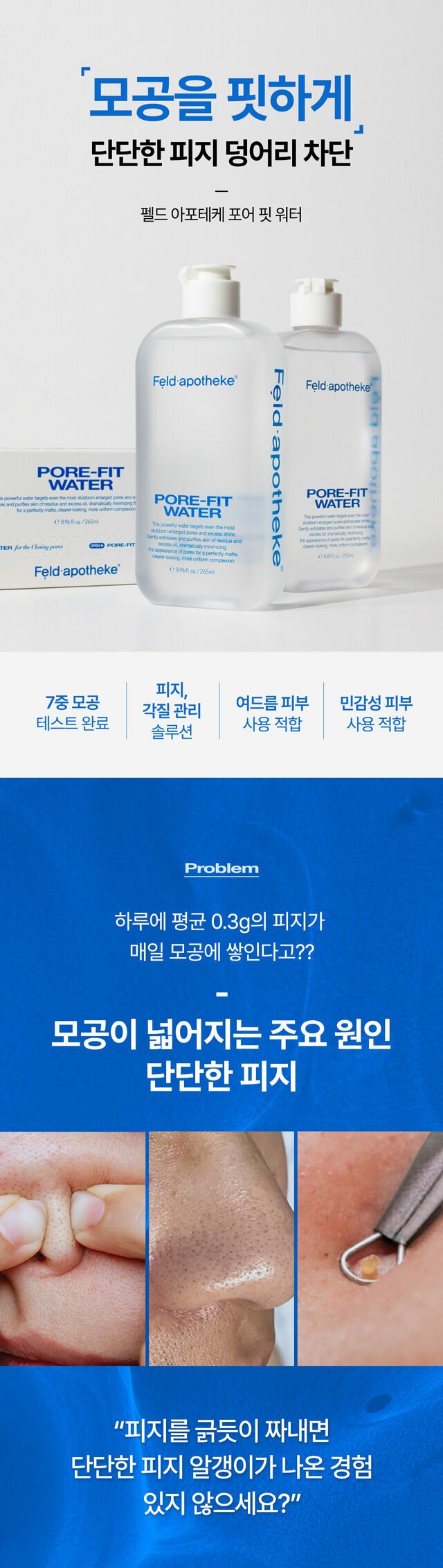 毛孔管理成分Pore-Fit Water含有 Tree Tannin ™是針對毛孔的獨特配方成分,Feld-apotheke獨有配方成分Tree Tannin,可以調節過度的皮脂分泌,淨膚的同時,與皮膚蛋白質結合,有效幫助毛孔收縮
