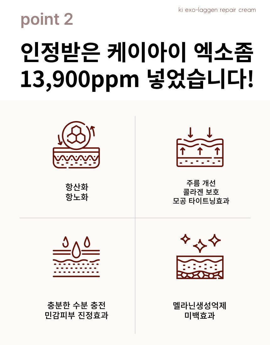 第二大成份係13,900PPM外泌體,全面改善膚質,為肌膚提升護理、毛孔護理、皺紋改善、美白效果、問題肌膚改善