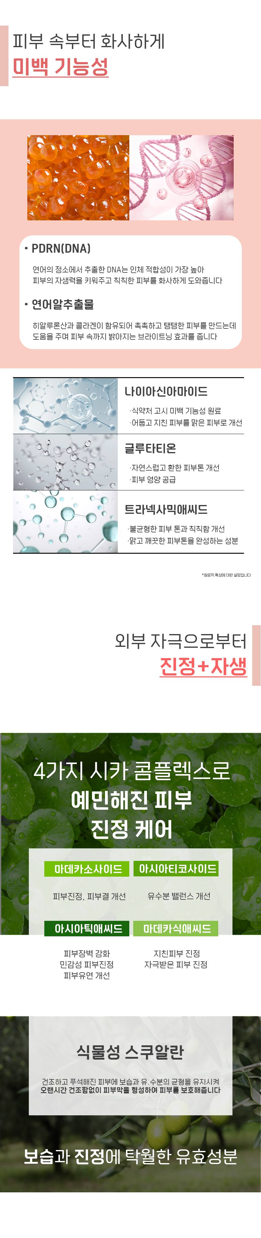 · PDRN(DNA):從鮭魚睪丸中提取的DNA與人體具有最高的兼容性,增強皮膚再生能力,提亮暗沉肌膚