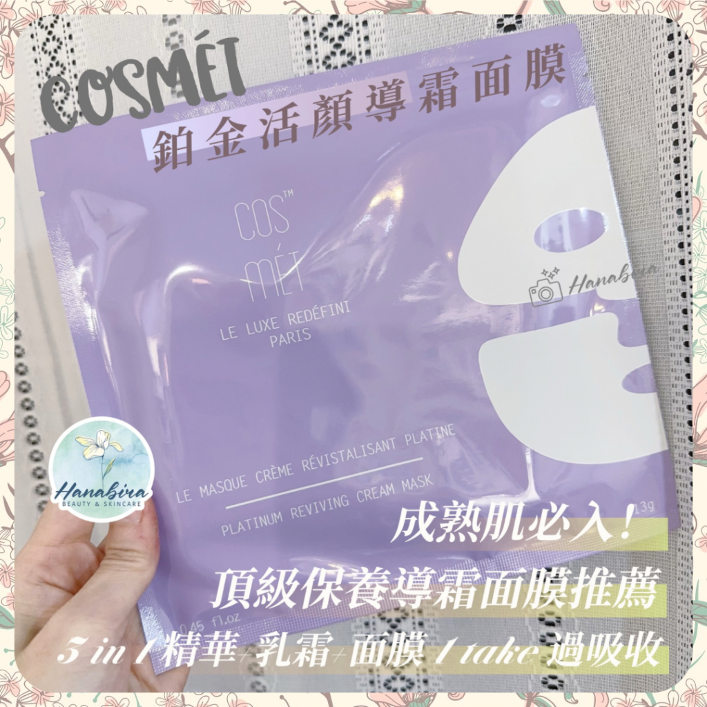 每一片《鉑金活顏導霜面膜》都盛載13g乳霜,長效⏰維持肌膚滋潤+緊緻+抗氧+修護,天然精華使肌膚更加:亮肌✨、淡斑🌟、補濕💦。相對比🖐️塗面膜多🔟倍功效!