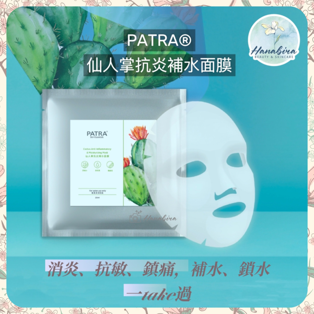 PATRA最新推出的仙人掌抗炎補水面膜,具備消炎、抗敏、鎮痛,配合3重專研鎖水配方,打通立體水迴圈,以最簡單的配方去解決肌膚問題,減負擔不減功效。