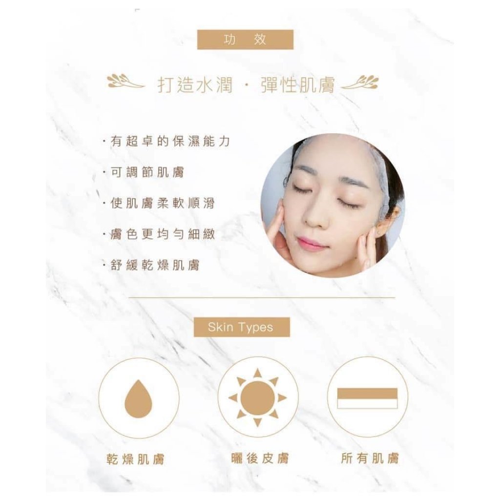 為皮膚補充重要水份,加強皮膚細胞健康及再生能力,打造水潤,彈性肌膚✨