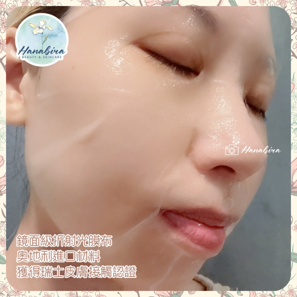 像鏡面一樣平整透明的質感,貼膚完全隱形,千倍吸液率滿載一整瓶量的30ml的精華,讓肌膚享受瀑布水療般的治癒。