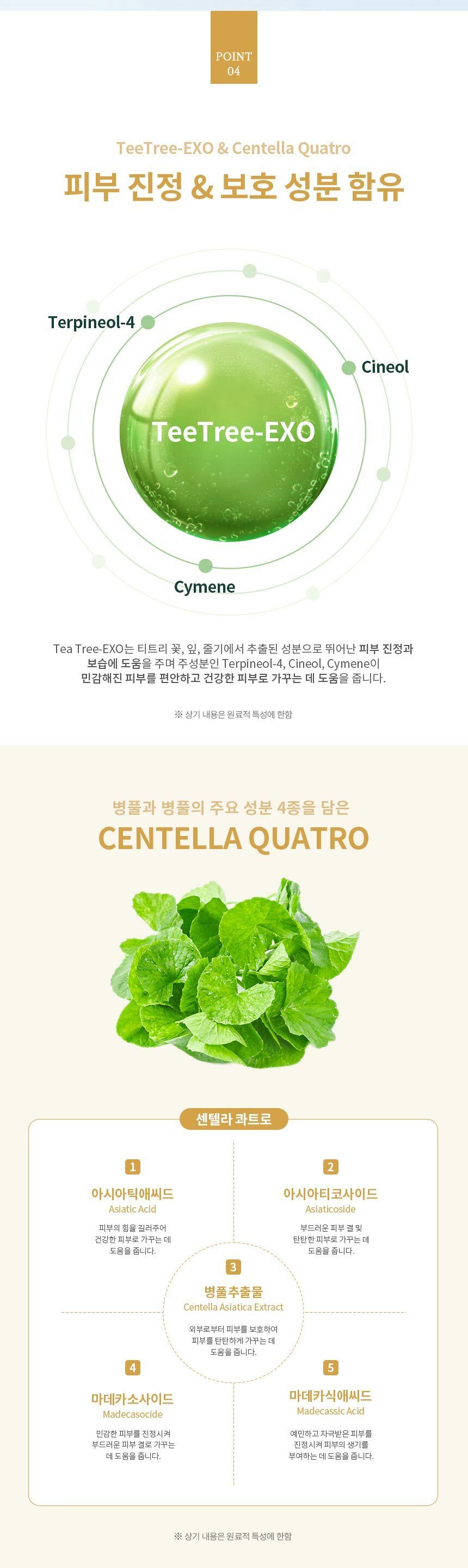 ●TEATREE-EXO(茶樹的花、根和莖提取物)——天然保濕成分及時為皮膚提供鎮靜和水合作用!幫助保持皮膚緊致,有助於保護和鎮靜皮膚免受外部刺激,激活皮膚的保濕因子,防止水分流失,提供光澤和光滑。