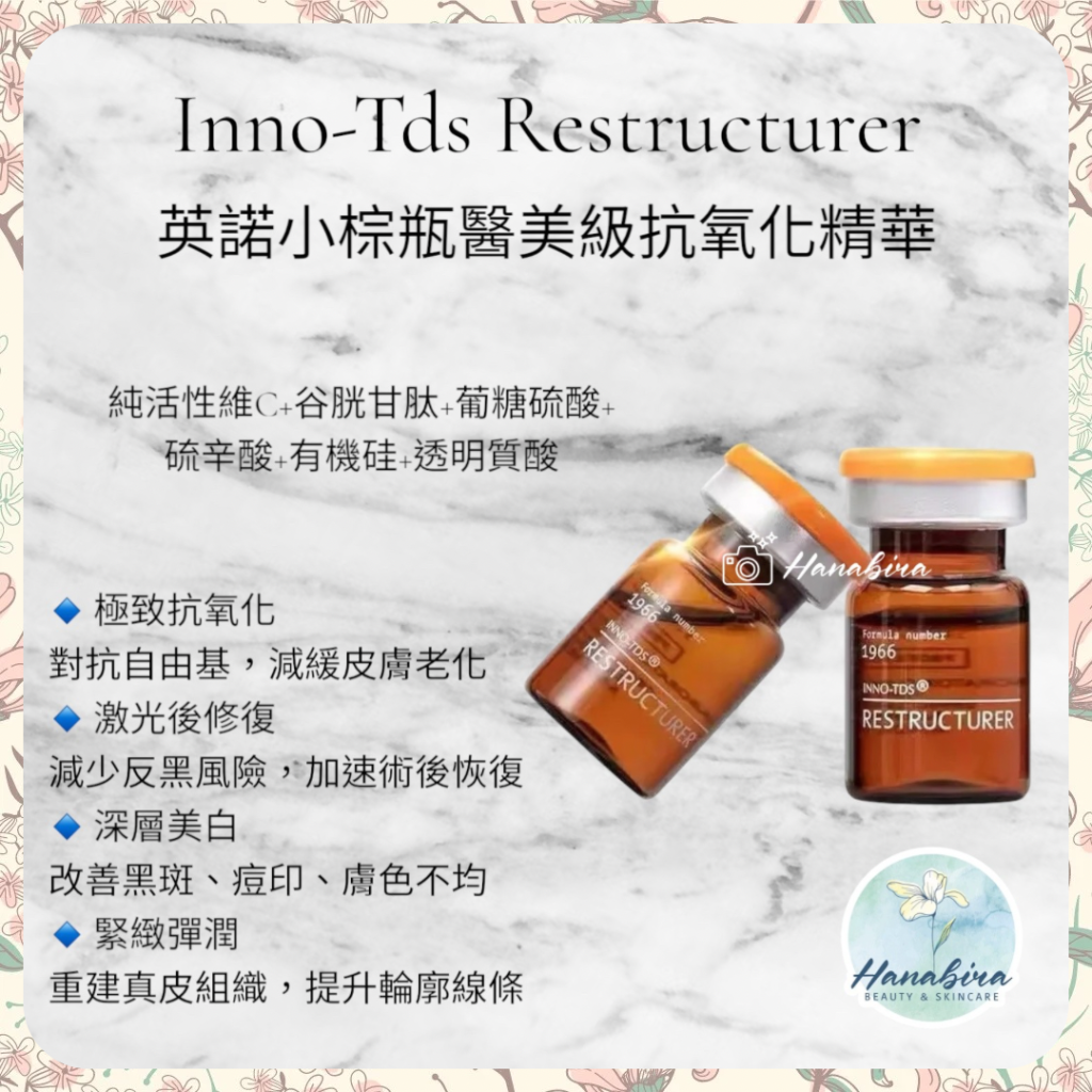 英諾小棕瓶富含除葡糖硫酸、硫辛酸、有機硅外,還包含多量純活性維C及谷胱甘肽,能夠抑制黑色素母細胞活躍,從源頭減少黑色素分泌。