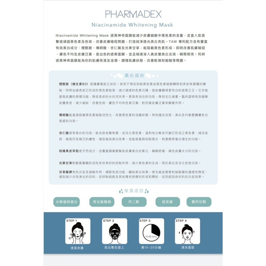 重點係相對其他美白面膜更著重補濕成份秋冬都唔會乾💦