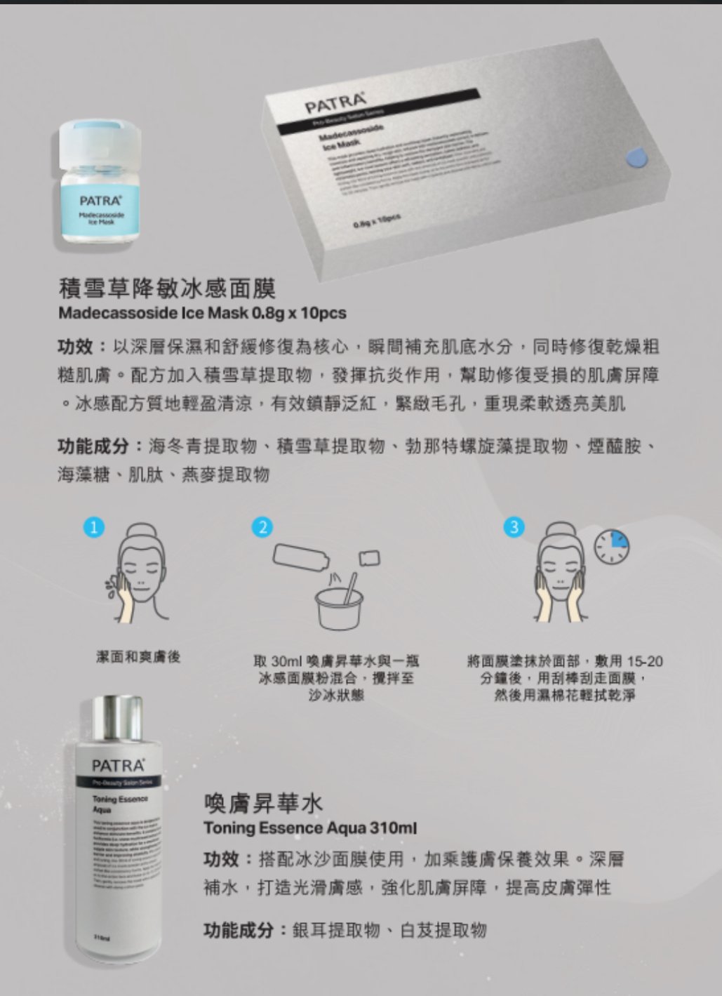 ♡ PATRA® 積雪草降敏冰感面膜0.8gX10支+喚膚昇華水 310ml ♡
