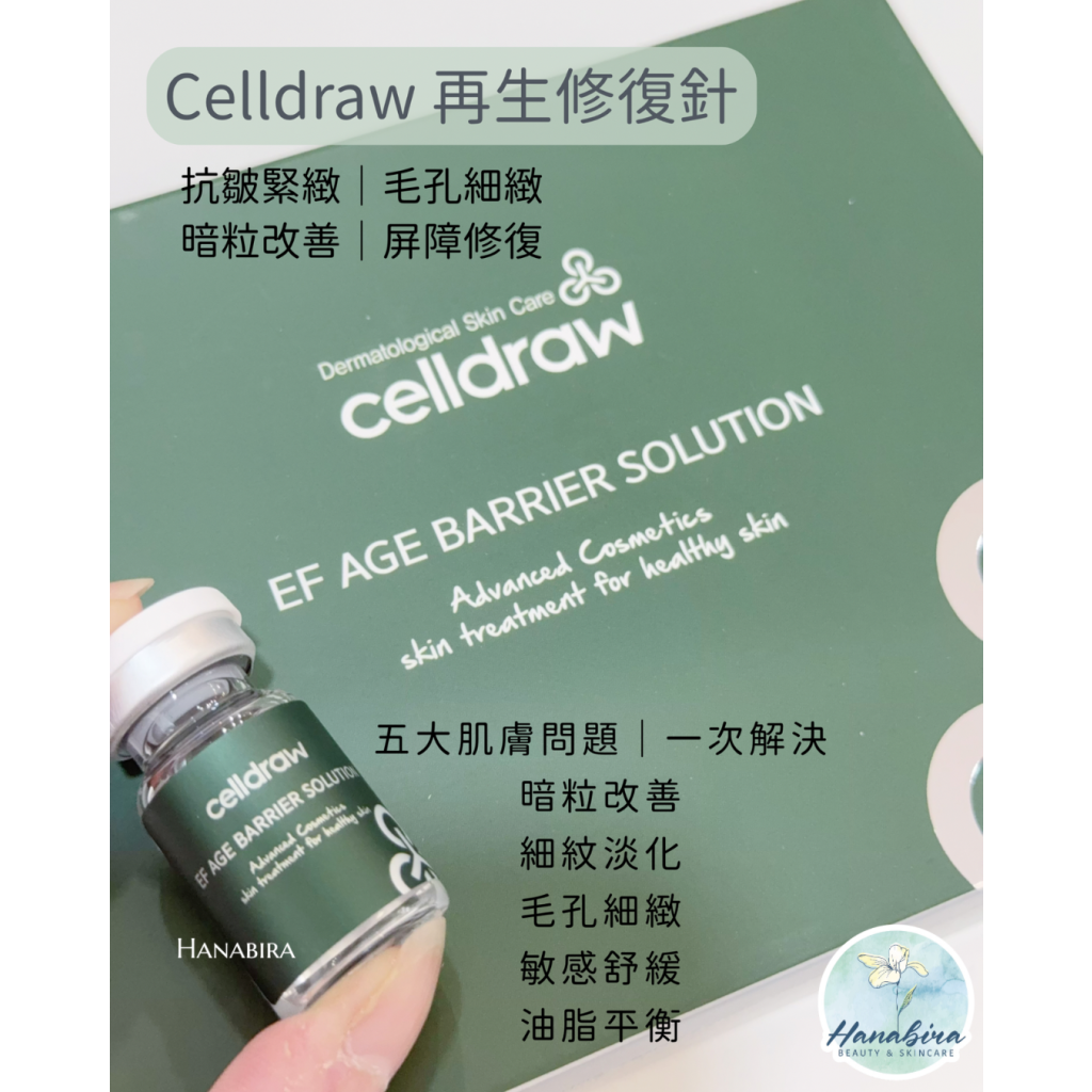 韓國 Celldraw 再生修復針 EF AGE BARRIER SOLUTION 是一款源自 韓國美容院專用 的高效修護精華。專為亞洲肌膚常見的 暗粒、細紋、毛孔、敏感、油脂不平衡 五大問題設計,透過 細胞級修復配方,結合神經酰胺、氨基酸、甜菜鹼等高效成分,不僅提供 即時提亮、細胞毛孔 的護理效果,更能 減少細紋、減少暗粒,實現肌膚整體健康平衡。每盒含 8支獨立5ml安瓶,確保活性成分新鮮高效,是居家護理也能享受美容院級專業修護的理想選擇。